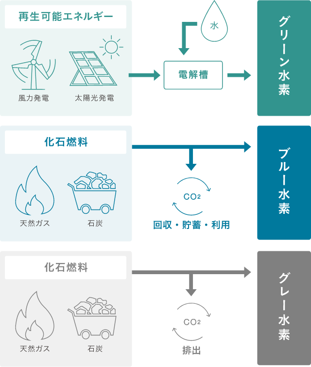 グリーン水素とは、水を再生可能エネルギーで電気分解してつくられる水素のことです。