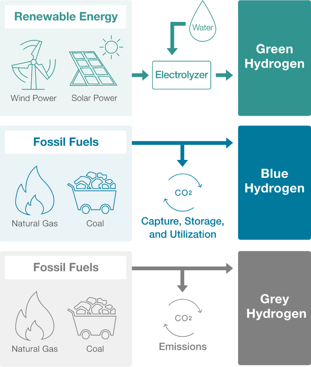 グリーン水素とは、水を再生可能エネルギーで電気分解してつくられる水素のことです。