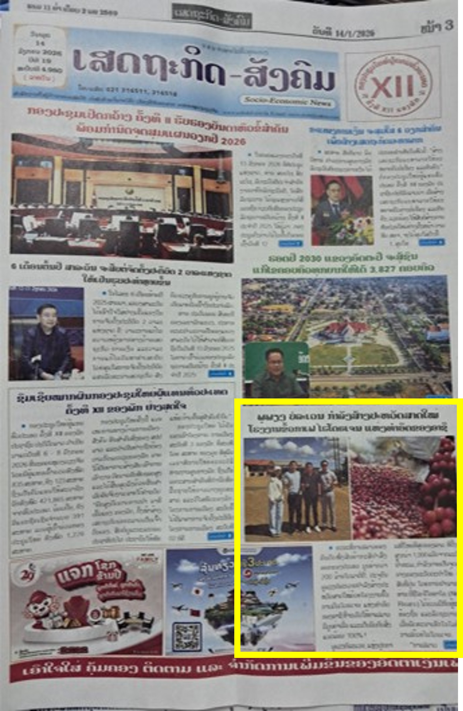 ラオスの社会経済ニュース紙に当社の取り組みが掲載されました